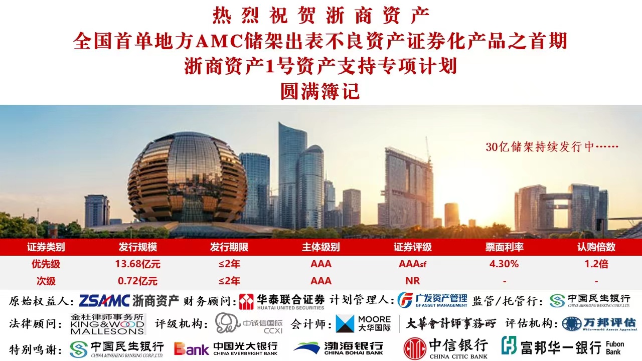 全國首單 | 浙商資產成功注冊30億元儲架出表ABS 并完成首期14.40億元發行