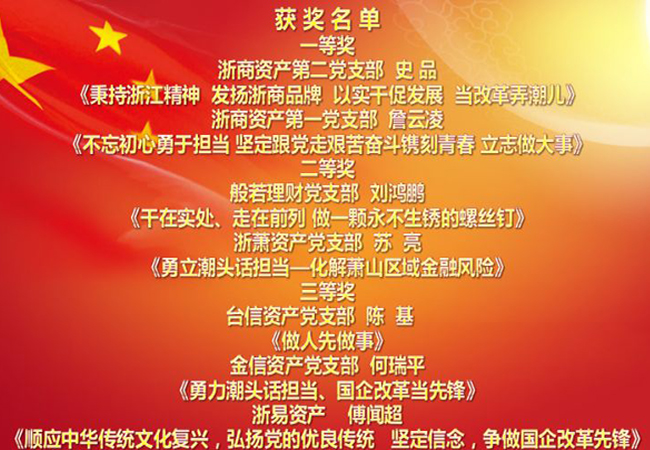 本次微黨課大賽宣講員們精心準(zhǔn)備,主題宣明,有圍繞集團(tuán)、公司戰(zhàn)略的“秉持浙江精神 發(fā)揚(yáng)浙商品牌”、“不忘初心勇于擔(dān)當(dāng) 堅(jiān)定跟黨走”,也有結(jié)合工作實(shí)際的 “如何干在實(shí)處、走在前列 做一顆永不生銹的螺絲釘”、“如何化解蕭山區(qū)域金融風(fēng)險(xiǎn)” 、“做人先做事”。在比賽現(xiàn)場(chǎng),選手們鏗鏘有力,激情奮發(fā),講述了一堂堂內(nèi)容生動(dòng)、精彩紛呈的微型黨課,充分展示了公司黨員高尚的理想追求和昂揚(yáng)的工作熱情。經(jīng)過(guò)評(píng)委公正的評(píng)判,最終選出了一等獎(jiǎng)二名,二等獎(jiǎng)二名,三等獎(jiǎng)三名,并推薦一等獎(jiǎng)參加集團(tuán)微黨課大賽。