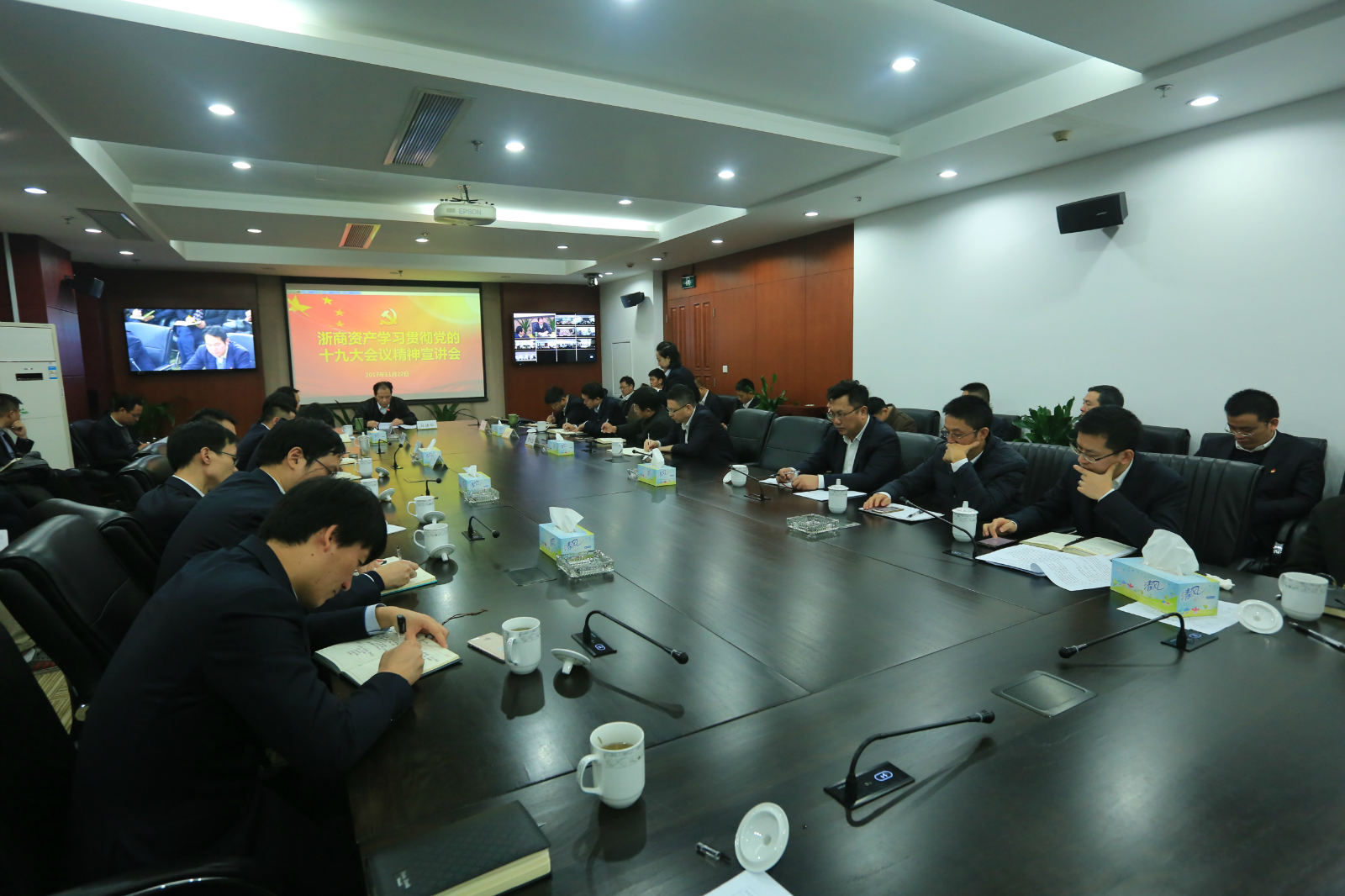 黨委副書記鄭順民表示,公司黨委將組織黨員認真學習貫徹十九大精神,按照孫建華書記宣講內容和提出來的要求,切實抓好落實。他強調了四點意見:一是真學深學,堅持自學與集中學習相結合、專題討論和交流分享相結合、學習培訓和開展宣講相結合、領導帶頭學和黨員普遍學相結合,做到全面掌握、學深悟透;二是學做結合,把學習貫徹十九大精神與謀劃公司發展方向、制定公司發展措施結合起來,抓重點、補短板、強弱項,全力做好“國內一流”“加速發展”兩篇文章,努力為全省經濟社會發展貢獻浙商資產的智慧;三是從嚴治黨,圍繞抓基本、打基礎,完善黨建工作制度,夯實基層基礎,以更加科學、更加嚴密、更加有效的舉措,加強黨的領導;四是擴大宣傳,用好網上網下兩個平臺,發動黨支部書記帶頭講黨課,謀劃用好公司宣傳欄、微信公眾號、公司網站等宣傳陣地,最大限度凝聚共識。