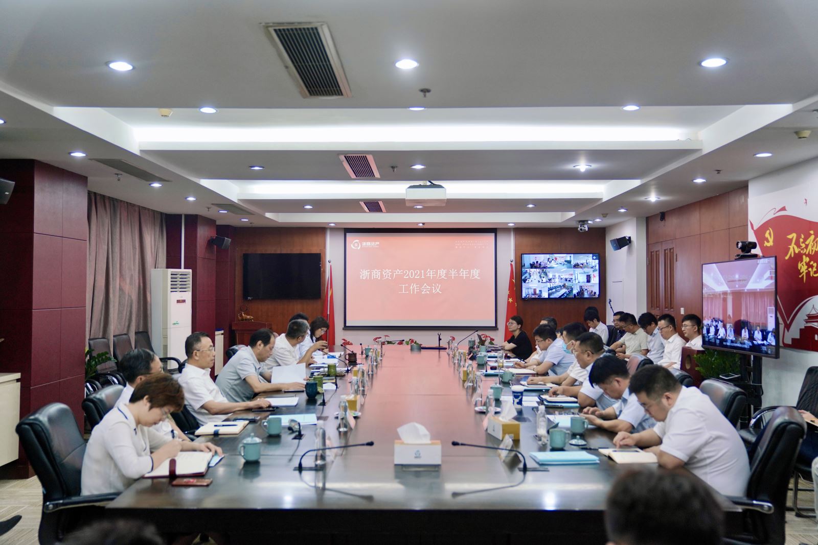 7月23日,浙商資產召開2021年半年度工作會議。會議回顧總結了2021年上半年經營管理取得的成績,研判分析形勢,并安排部署下半年重點工作。本次會議采取“現場+視頻”形式,浙商資產領導班子及業務副總,浙商資產本級及成員公司全體員工(含浙北、浙越、金玨、浙商藍綠、浙商正諫,億利達派代表)、浙商資產外派人員等共計近600人參加會議。浙商研究院、財務、運管、風控等分別從各自條線做了半年度情況分析報告。會議由公司黨委委員、常務副總經理兼首席戰略官李傳全主持。